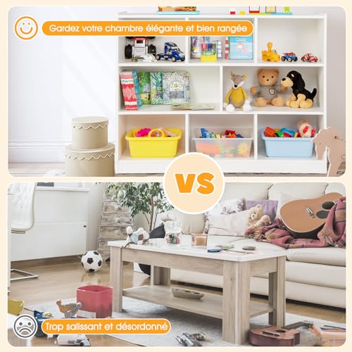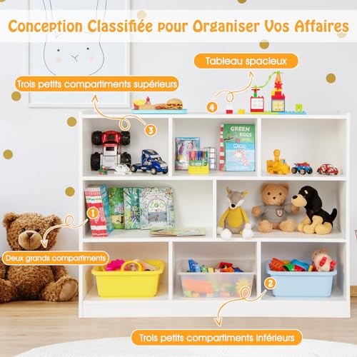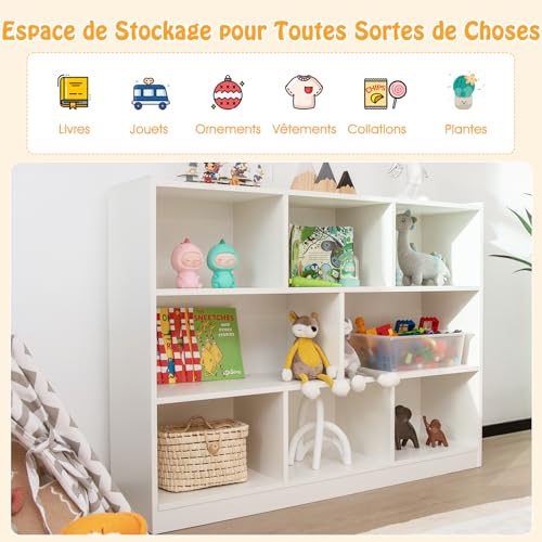 GOPLUS - جوبلس خزانة كتب 5 - 8 مكعبات مفتوحة وحدة تخزين لمكتبة الاطفال وغرفة المعيشة للكتب والالعاب 122 × 32 93 سم ابيض بلاستيك