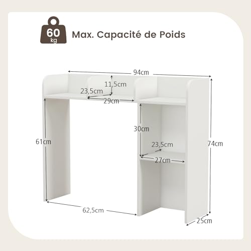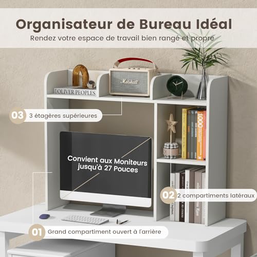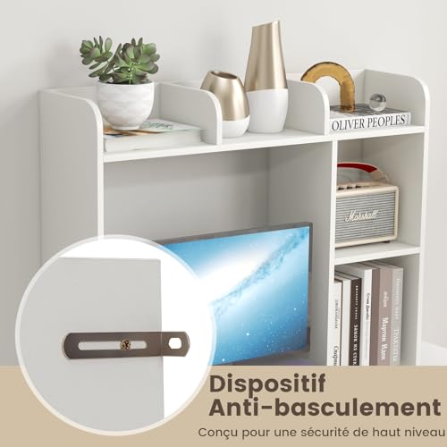 GOPLUS - جوبلس منظم مكتب مع ارفف متعددة، مناسب للشاشات حتى 27 انش، مضاد للامالة، 94 × 25 × 74 سم، ابيض