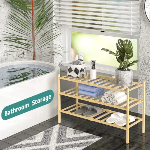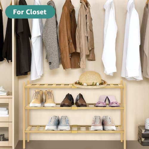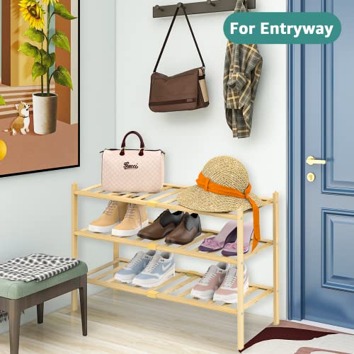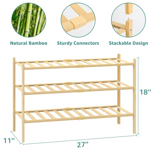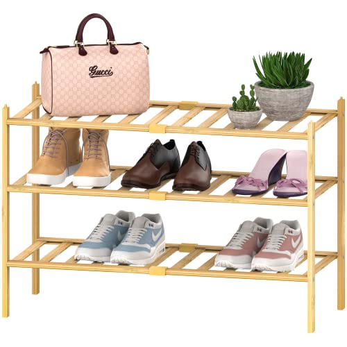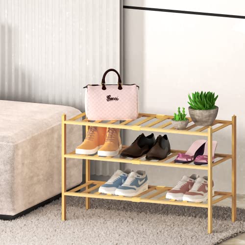 Goramio - رف أحذية من الخيزران مكون من 3 طبقات - رف أحذية متين للمدخل والخزانة وغرفة المعيشة - رف أحذية صغير قائم بذاته - منظم تخزين أحذية قابل للتكديس من جوراميو - 2768.58 × 27.94 × 45.72 سنتيمتر - لون طبيعي