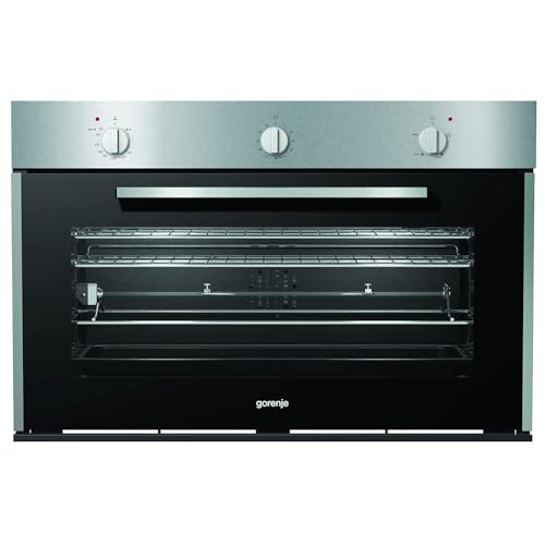 Gorenje - فرن غاز ستانلس ستيل بلت ان بشواية ومروحة من جورنجي BOG922E00FX، 90 سم - اسود