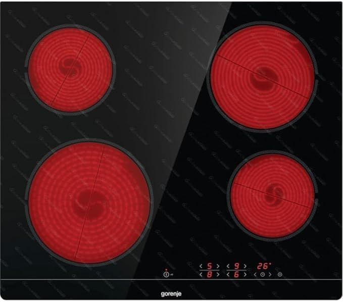 Gorenje - بوتجاز كهربائي مشع مع تحكم باللمس وزجاج سيراميك وتحكم في الغليان مع 4 مناطق تسخين من جورينجي مقاس 60 سم ECT641BSC