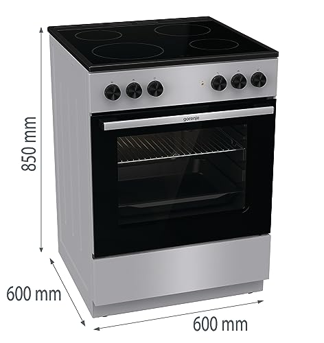 Gorenje - بوتاجاز كهربائي GEC6A11SG بسطح طهي من السيراميك الزجاجي وفرن بسعة 65 ل صنع في جمهورية التشيك من جورينيه، 60 سم
