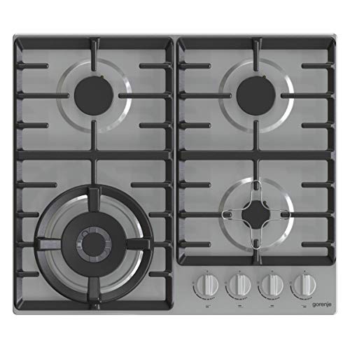 Gorenje - موقد غاز مسطح مدمج من الاينوكس بشعلات غاز محمية وشبكات من الحديد المصبوب واشعال بيد واحدة مع ضمان لمدة سنة واحدة مقاس 60 سم موديل (GW641X) من جورنجي