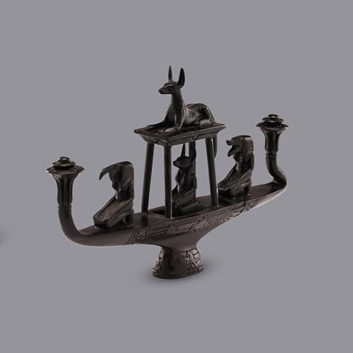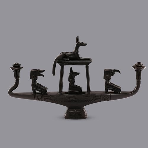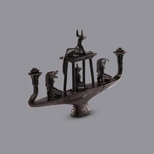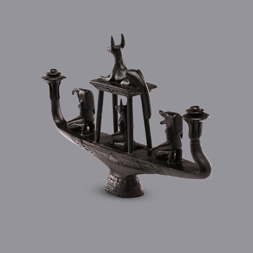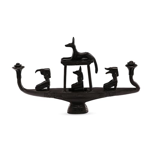 Generic - قارب جنائزي رائع لله انوبيس مع تحوت في الامام وسوبيك في الخلف. مصنوع يدويا من الحجر الاسود صنع في مصر