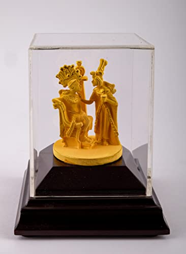 Generic - صندوق زجاجي رائع مع الملك المصري توت عنخ آمون مع زوجته الملكة عنخسين امون، صنع في مصر، أصفر