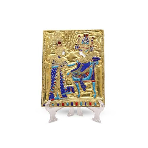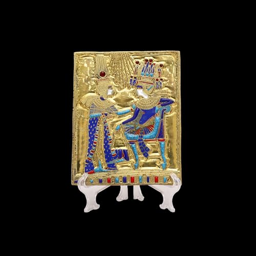 Generic - لوحة للملك توت عنخ آمون والملكة عنخس إن آمون، نفس التفاصيل من الجزء الخلفي من عرش توت عنخ آمون في المتحف المصري، القاهرة، مصنوعة يدويا من النحاس والأحجار الكريمة - صنع في مصر