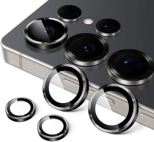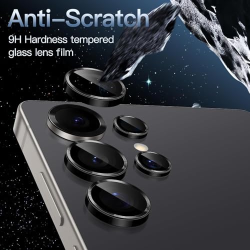 Generic - Gorilla Shop Camera Lens Protector for Samsung Galaxy S25 Ultra 5G, 9H Tempered Glass Metal Ring Cover, Easy Installation Tray, HD Clear, 1 Set (Black)
