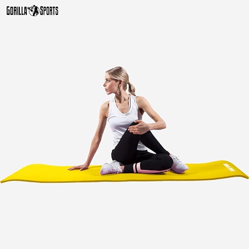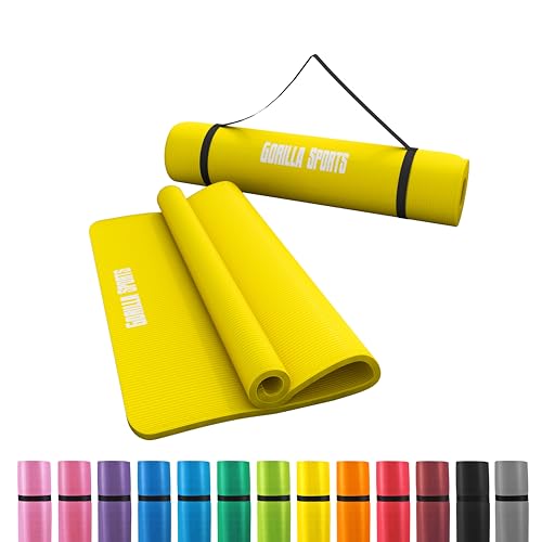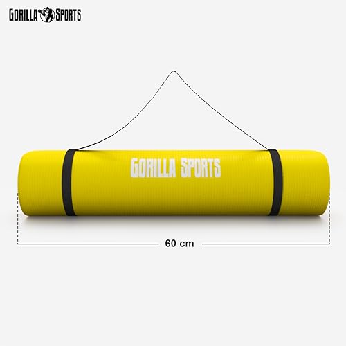 GORILLA SPORTS - سجادة لتمارين اليوجا بحزام حمل ومقاومة للانزلاق والماء ومناسبة للتمارين والبيلاتس والجيم واللياقة البدنية والجمباز من جوريلا سبورتس® 13 لون، مقاس 1.9 م × 60 سم × 1.5 سم أو 1.9 م × 1 م × 1.5 سم