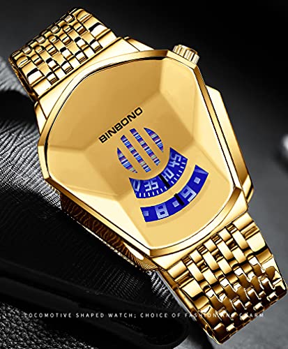 Gosasa - ساعة يد كوارتز عصرية رقمية كاجوال ومقاومة للماء ستانلس ستيل بتصميم هندسي للطلاب والرجال, ذهبي كامل,