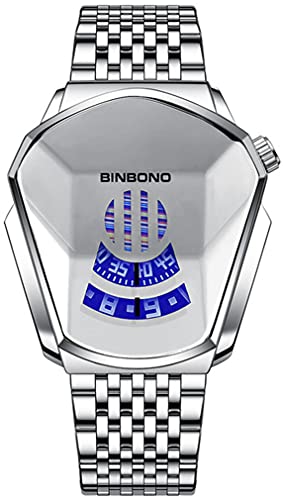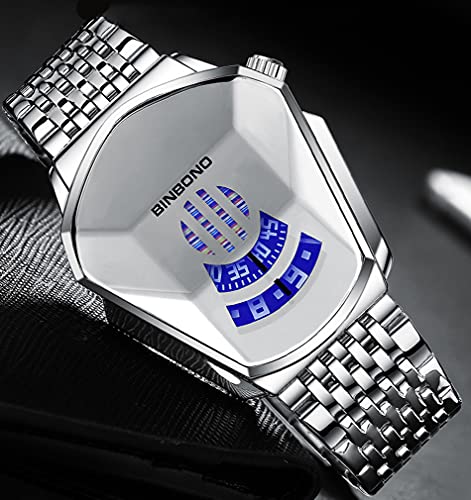 Gosasa - غوساسا ساعة يد كوارتز كاجوال مقاومة للماء من الستانلس ستيل بتصميم هندسي للرجال بسيط وعصري بمينا أسود