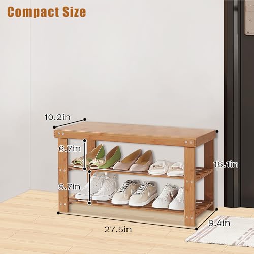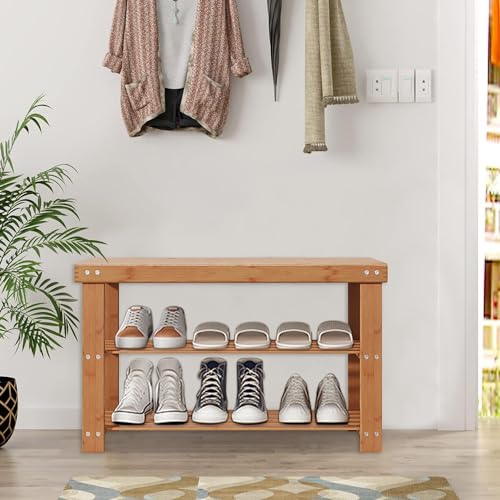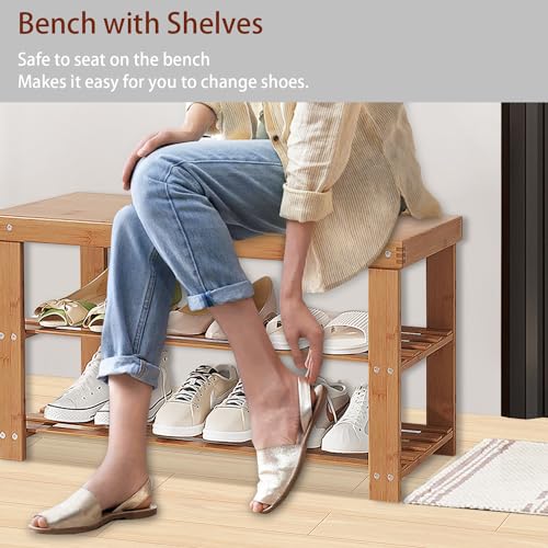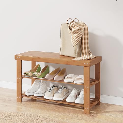 Gosider - منظم أحذية من البامبو مصمم على شكل مقعد، منظم أحذية من خشب البامبو الصلب للتخزين في المدخل والباب الأمامي والمدخل وغرفة المعيشة من 3 طبقات من جوسايدر