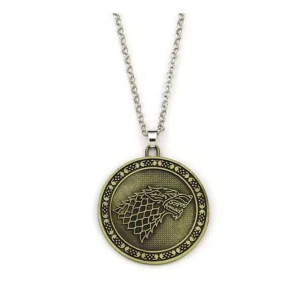 Generic - قلادة بدلاية ذهبية ثلاثية الابعاد بتصميم راس ذئب مستوحى من ستار ستار من جي او تي هاوس ستارك بتصميم مستوحى من شخصية باراثون وتارجارين ولانيستر ستارك تيريل بلمسة نهائية عتيقة