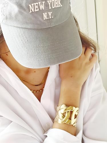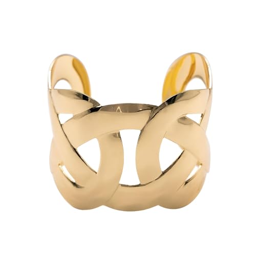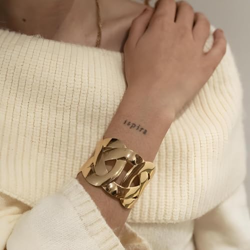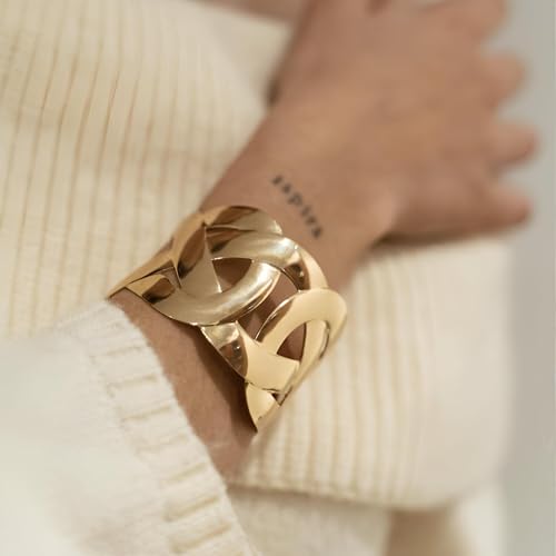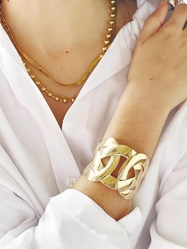 Generic - سوار عريض قوطي - تصميم معدني ذهبي بسيط مع نمط هندسي، عرض 4.5 سم، وصلة سلسلة قابلة للتعديل للجنسين
