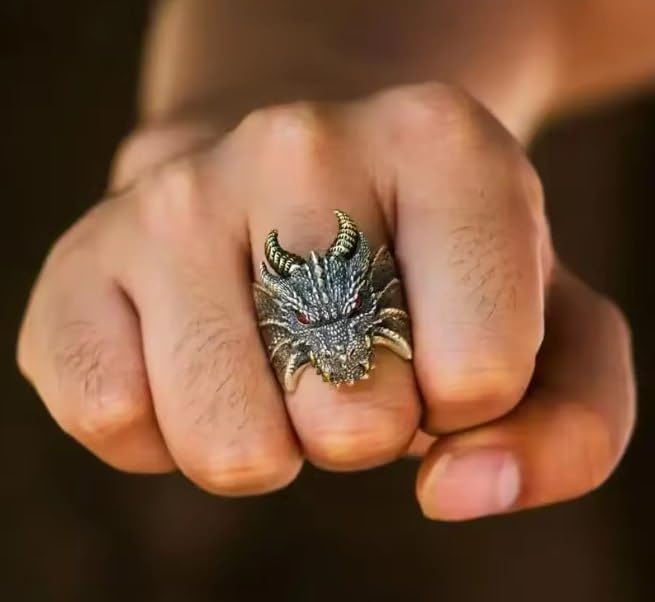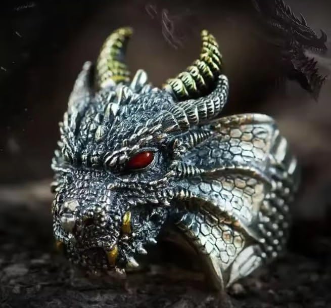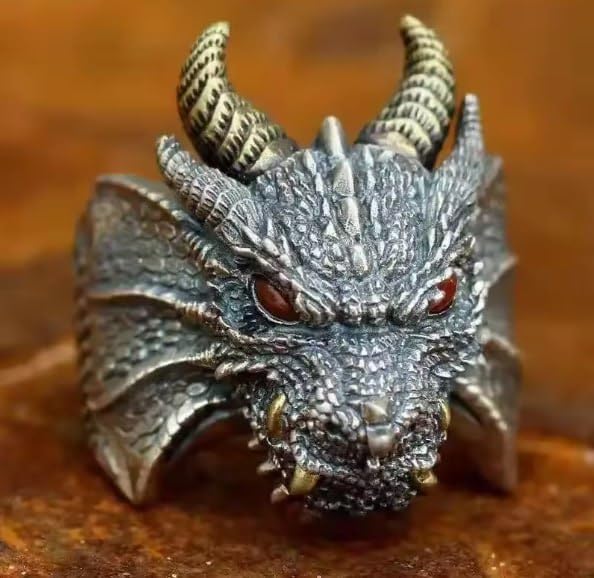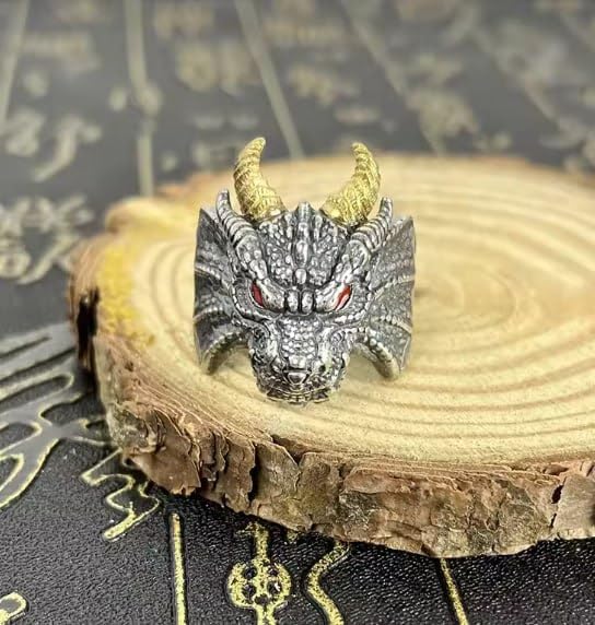 Generic - خاتم راس تنين قوطي، تصميم خاتم مفتوح للرجال، مجوهرات بانك للدراجات النارية