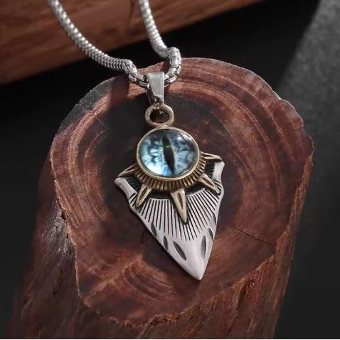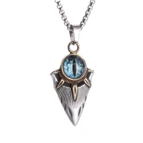 Generic - قلادة بدلاية على شكل عين الثعبان القوطي، سلسلة فضية كريستالية زرقاء، تميمة راكب الدراجة النارية للرجال والنساء، هدية للحفلات