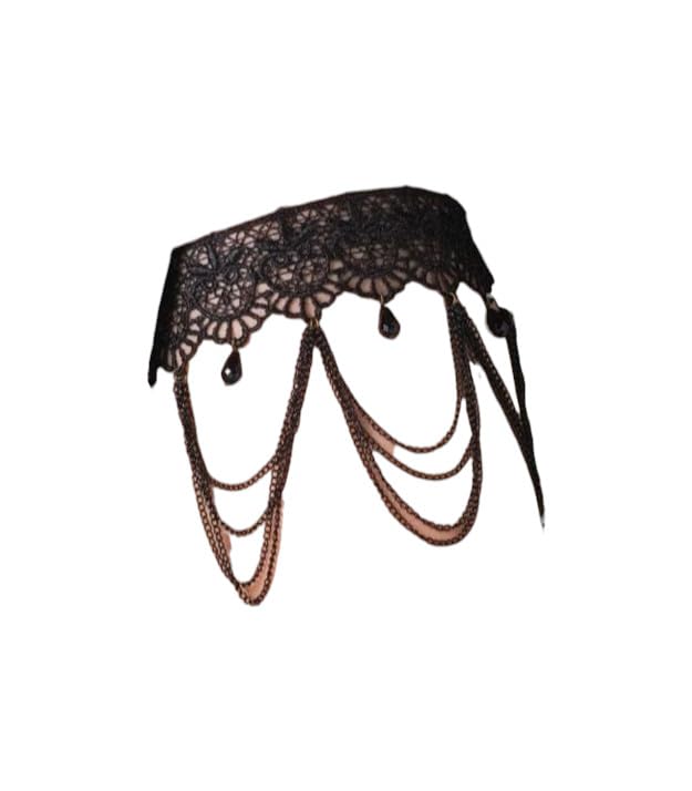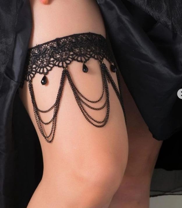 Generic - رباط فخذ بتصميم قوطي مع بسلسلة معلقة، حزام ساق مزين بخرز وكريستال وأكسسوار تنكري