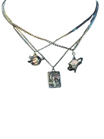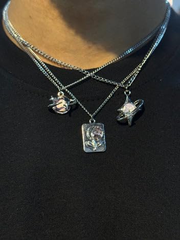Generic - سلسلة قوطية ثلاثية مع دلاية على شكل زهور وحليات، فضي