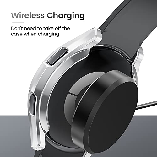 - 【الموديلات المتوافقة】: متوافق مع ساعة سامسونج جالاكسي 4 كلاسيك مقاس 46 ملم (محتوى العبوة: 1×جراب شفاف، 1× جراب فضي، 2 × شاشة حماية)