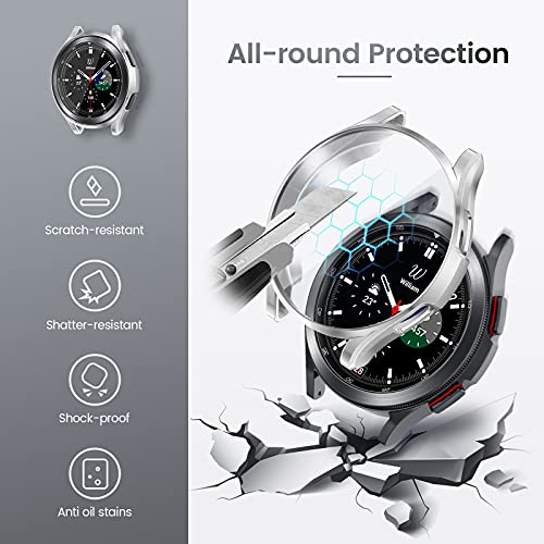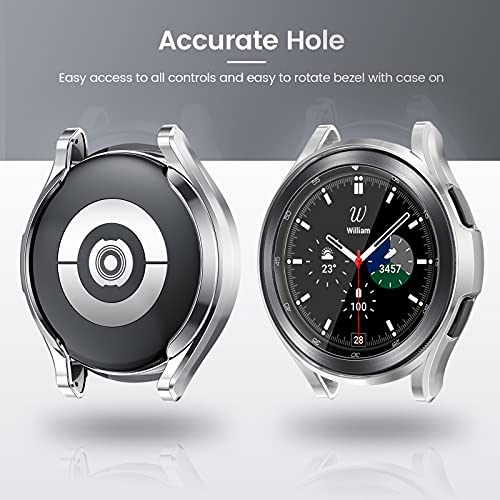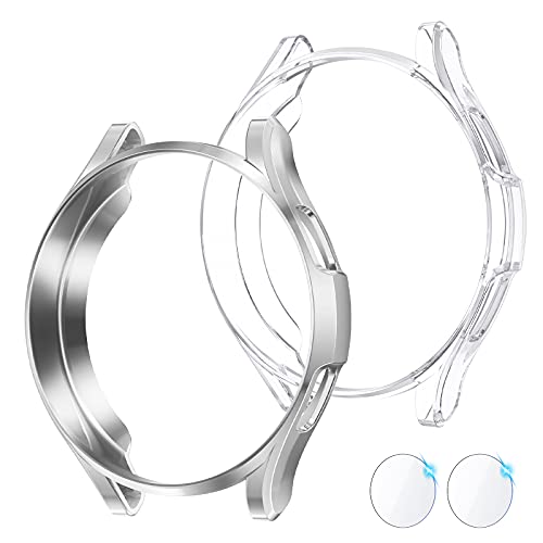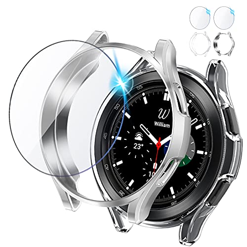 Goton - مجموعة شاشة حماية من الزجاج المقوى قطعتين وجراب البولي يوريثين المقاوم للحرارة الناعم لساعة سامسونج جالاكسي 4 كلاسيك 2021 مقاس 46 ملم 2+2 جوتون بولي اللدن بالحرارة فضي