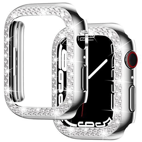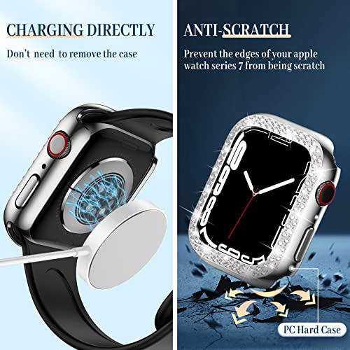 Goton - جوتون جراب متوافق مع شاشة حماية ساعة ابل سلسلة 7، غطاء صلب من البولي كربونات ممتص للصدمات للنساء (فضي، 41 ملم)