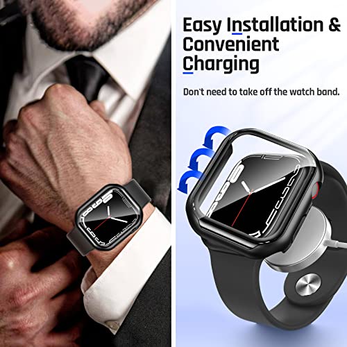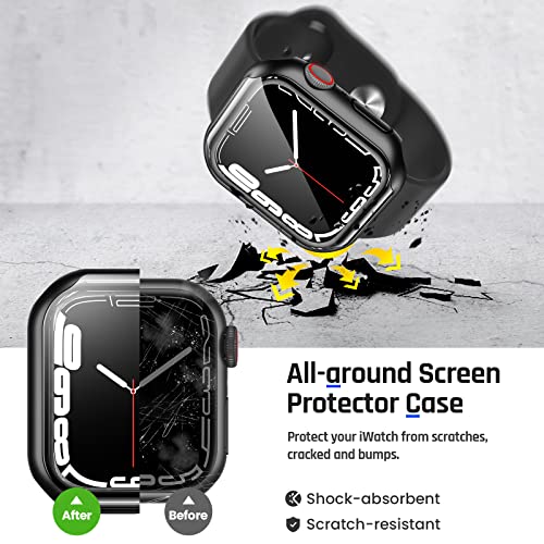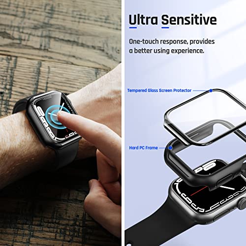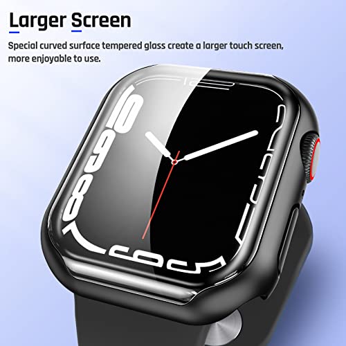 Goton - جوتون جراب واقي للشاشة من الزجاج المقوى بسطح منحني متوافق مع ساعة ابل سلسلة 7 مقاس 45 ملم، واقي كامل من الصدمات متوافق مع ملحقات ساعة اي ووتش 45 ملم، اسود