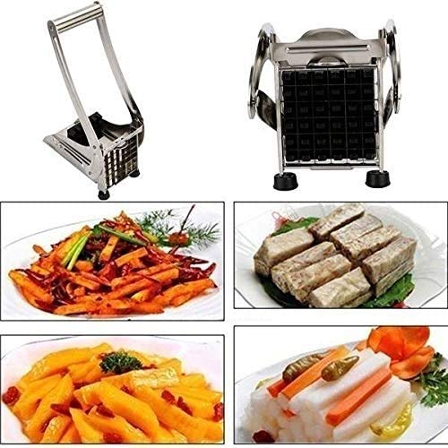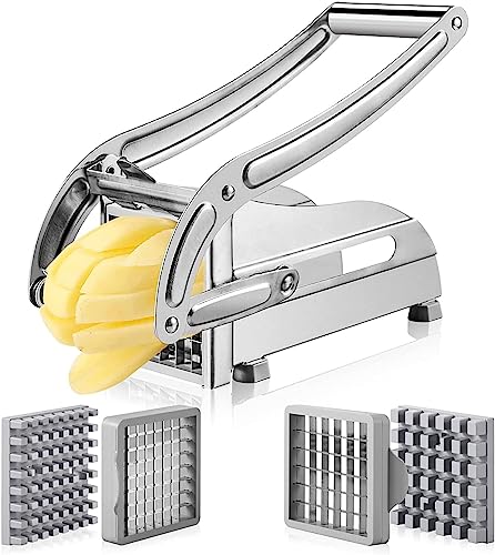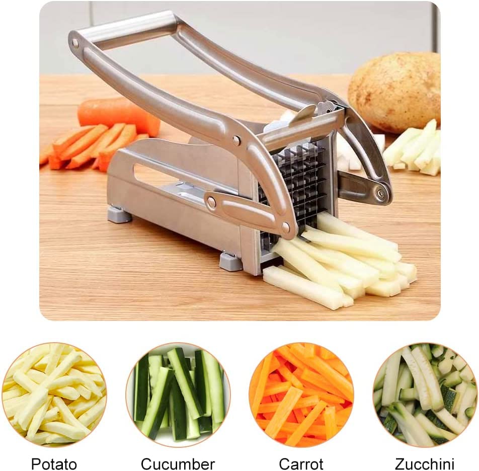GOTOTOP - قطاعة شرائح البطاطس المقلية من فولاذ مقاوم للصدأ، قطاعة خضروات ومكعبات ومبشرة بطاطس وقطاعة شرائح شيبس مع شفرتين بديلتين وأرجل مانعة للانزلاق لاستخدام تجاري وعائلي سهلة الاستخدام من جوتوتوب