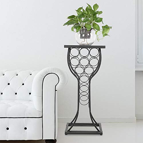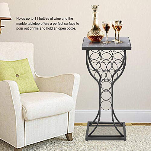 GOTOTOP - جو توب رف نبيذ معدني 11 حامل زجاجة مع طاولة بلمسة نهائية رخامية ديكورات رئيسية عتيقة عمود زهور زجاجات نمط صناعي للنبيذ
