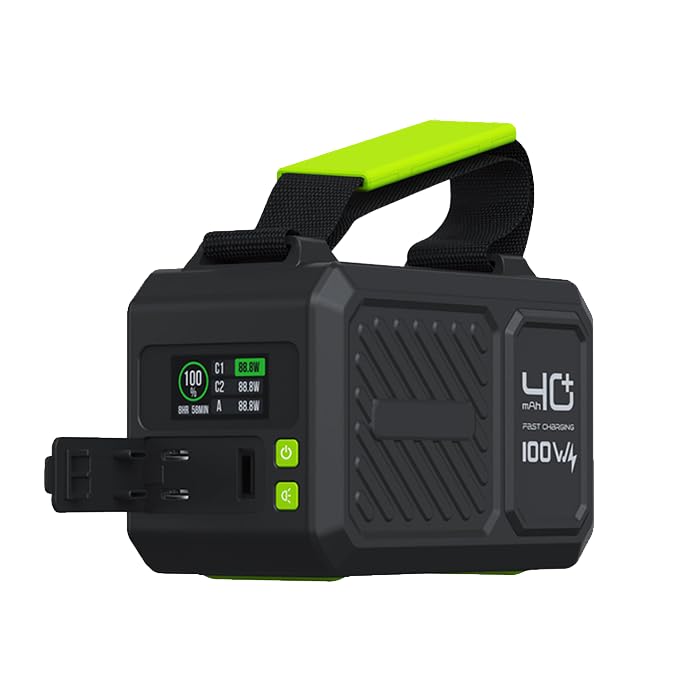 GOUI - محطة الطاقة المحمولة بيست 100 بسعة 40000 مللي امبير، تدعم مخرج طاقة AC/DC بقوة 100 واط، وبجهد يتراوح بين 5 إلى 20 فولت، وتتضمن 6 منافذ من جوي، لون أسود