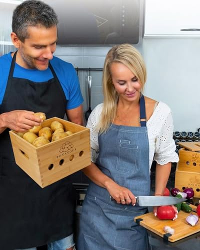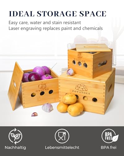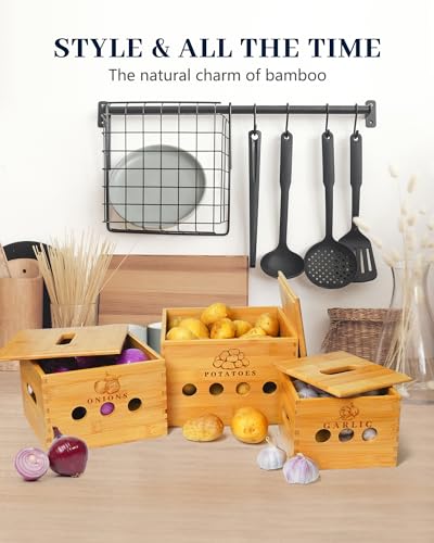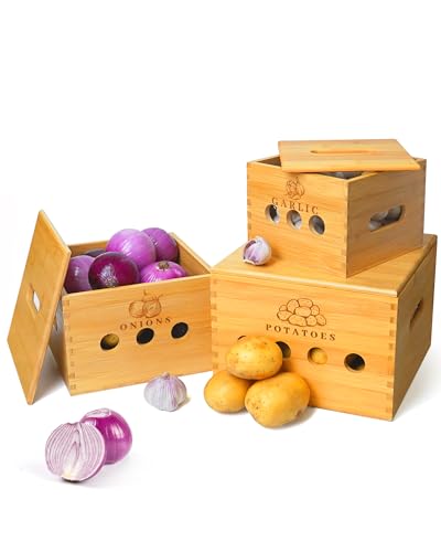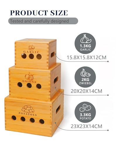 GOURDBRO - مجموعة صناديق تخزين البطاطس من جوردبرو مكونة 3 قطع لتخزين والبصل والثوم مع فتحات تهوية حاوية وعاء بطاطس المطبخ يحافظ على الخضروات طازجة لفترة اطول