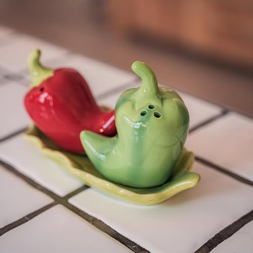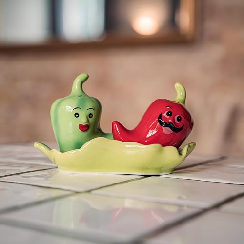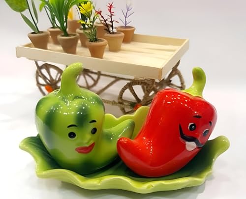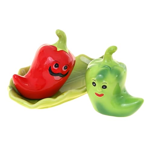 Generic - طقم ملح وفلفل – مزيج عصري وأنيق، عبوتان جميلتا الشكل على هيئة فلفل حار أحمر وأخضر، للاستخدام على مائدة الطعام وكمنتجات ديكور من جورميه