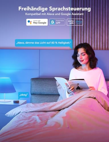 - ملايين من خيارات الألوان: اختر من بين 16 مليون لون ودرجة إضاءة/سطوع قابلة للتعديل بنسبة 1-100% لجعل مساحتك أكثر حيوية مع 1000 لومن. هناك أيضًا خيارات قابلة للتعديل من الأبيض الدافئ 2700 كلفن - 6500 كلفن إلى ضوء النهار البارد للقراءة أو الاسترخاء.