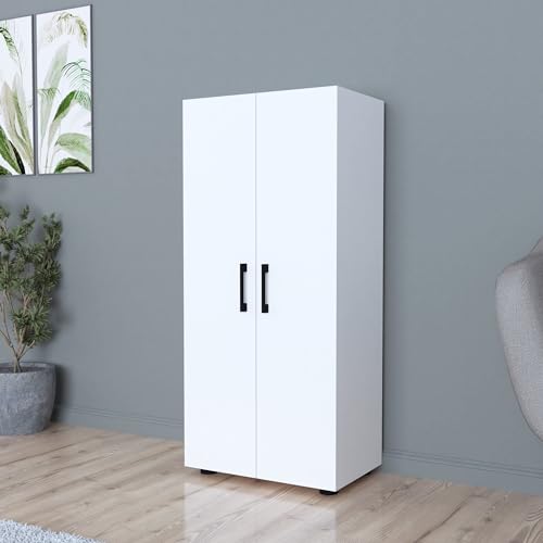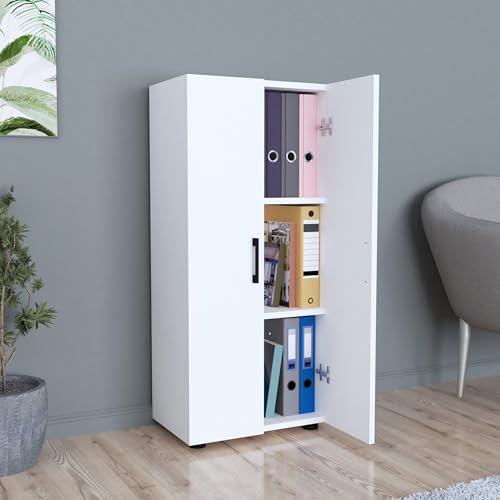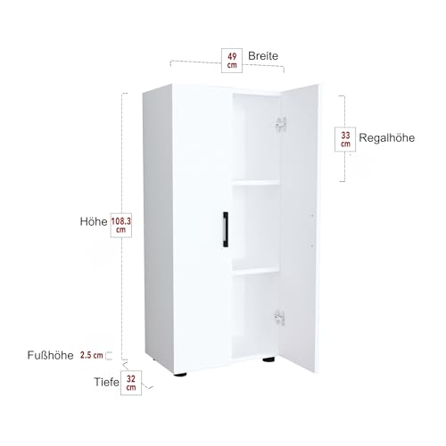 gowoll - خزانة خشبية متعددة الأغراض ببابين و3 أرفف للمطبخ والحمام والملفات والمكتب والرواق من جوول - لون أبيض - مقاس 1.08 متر × 49 سم × 32 سم