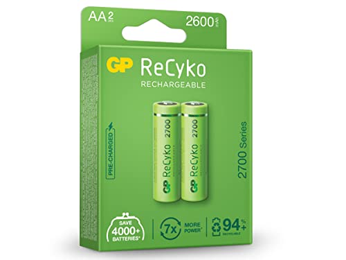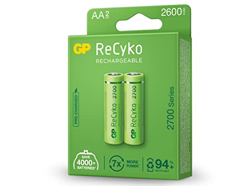 - جي بي بطارية ريسايكو ايه ايه 2700 مللي امبير في الساعة قابلة لإعادة الشحن، عبوة من قطعتين، بطارية جي بي