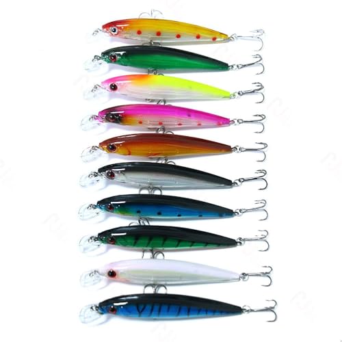 GQ - مجموعة طعوم صيد السمك من جي كيو، طُعم كرنك بوبر بتصميم سمكة المنوة وخطاف مخصص للصيد في المياه المالحة والعذبة، لصيد السلمون المرقط والسلمون، 10 قطع