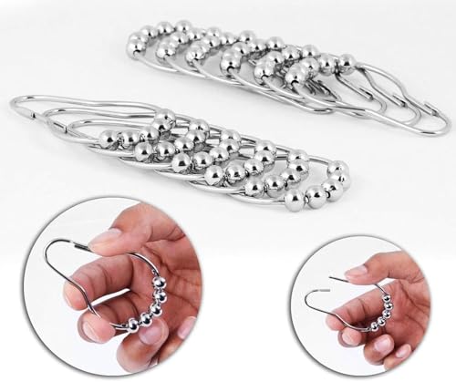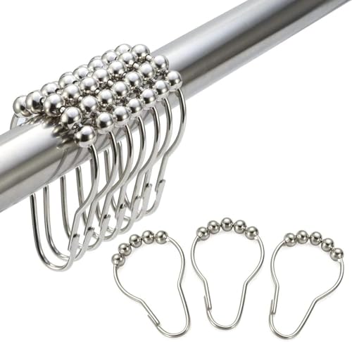 GQ - حلقات خطافات ستارة الحمام من جي كيو، حلقات ستارة حمام من الفولاذ المقاوم للصدأ وخطافات لقضبان الدش وتعليق الستائر من النيكل المصقول، 12 قطعة