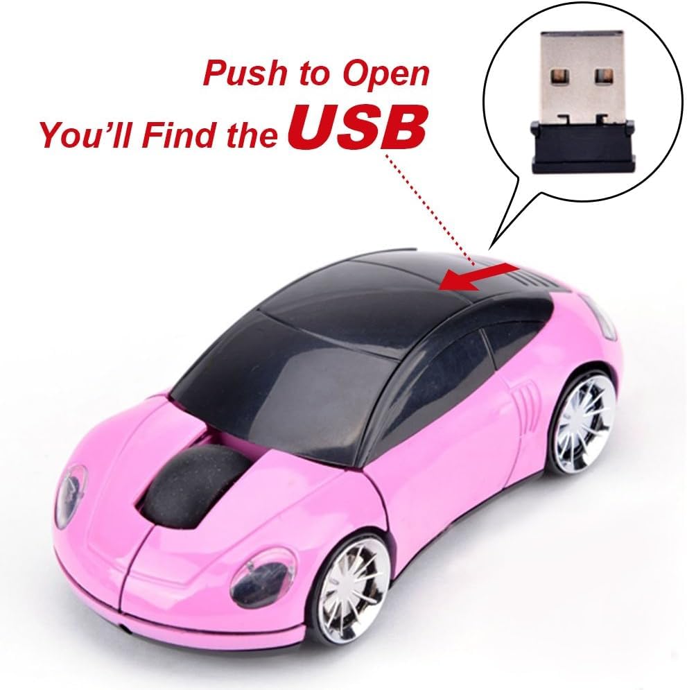 GQ - ماوس العاب ضوئي لاسلكي ثلاثي الأبعاد على شكل سيارة 2.4 جيجاهرتز بمنفذ USB مع جهاز استقبال للكمبيوتر واللاب توب من جي كيو، (أزرق)