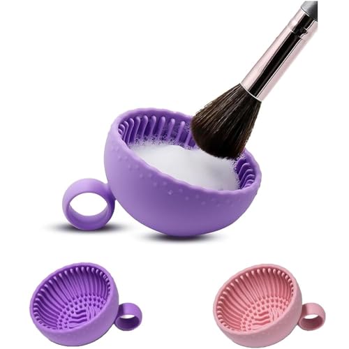 GQ - منظف فرش مكياج من جي كيو مثالي لتنظيف وسادات المكياج بكفاءة وعاء تنظيف المحمول السيليكون مناسب للسفر للنساء وردي أرجواني 2 قطعة