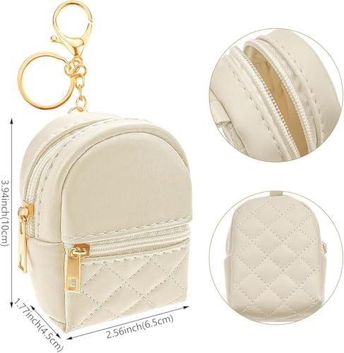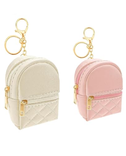 GQ - جي كيو شنطة ظهر صغيرة لمستحضرات التجميل وسلسلة مفاتيح مصنوعة من جلد البولي يوريثين وحامل احمر شفاه لطيف للعملات المعدنية والمحفظة والبطاقات وتنظيم كيبل البيانات وشنطة تخزين محمولة للنساء (بيج+بينك) - قطعتين