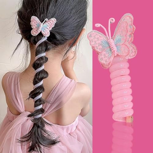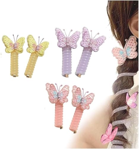 GQ - 3 أزواج من ربطات الشعر السلكية على شكل فراشة وملونة من جي كيو، أربطة شعر ملونة بسلك موبايل، ربطات شعر حلزونية على شكل فراشة، ربطة شعر حلزونية مستقيمة