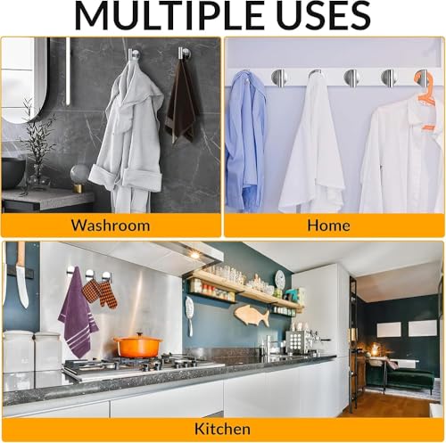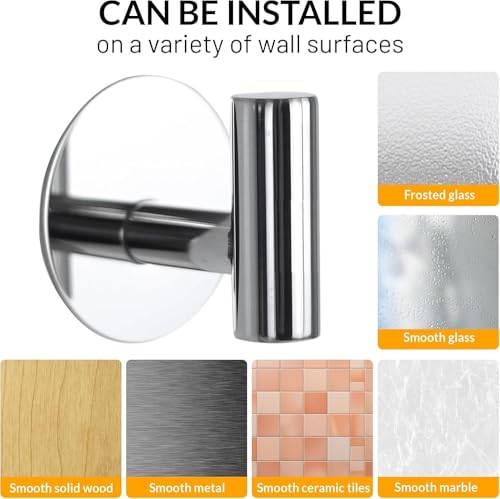 - اشعر بالفرق! عند استخدام خطاف حائط فريد منا! مصنوع من مادة الستانلس ستيل شديدة التحمل وشريط لاصق 3 ام عالي الجودة. مناسبة للمطبخ والمنزل وغرفة الاستحمام والمراحيض.
