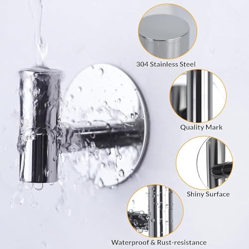 - متينة ومقاومة للماء؛ خطافاتنا مصنوعة من مادة الستانلس ستيل شديدة التحمل ومطلية بالكروم والنيكل لضمان مقاومة عالية للماء. يتم تثبيت الخطاف على الحائط باستخدام شريط ذاتي اللصق 3 ام شديد التحمل يتحمل ما يصل إلى 15 باوند.