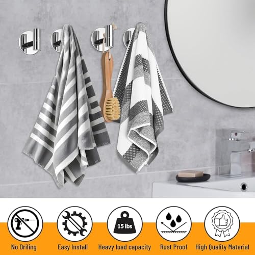 GQ - 3 قطع من خطافات الحائط اللاصقة مع شرائط لاصقة اضافية مجانية خطاف منشفة الستانلس ستيل شديد التحمل شماعات حائط للمطبخ والحمام والمناشف فضي منجي كيو