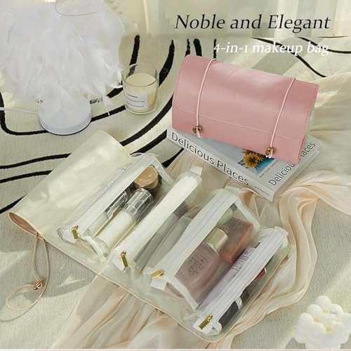 GQ - شنطة مكياج محمولة 4 في 1 من جلد البولي يوريثين تخزين قابلة للطي للسفر صغيرة ومريحة تتضمن شنط للفصل زهري جي كيو