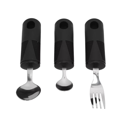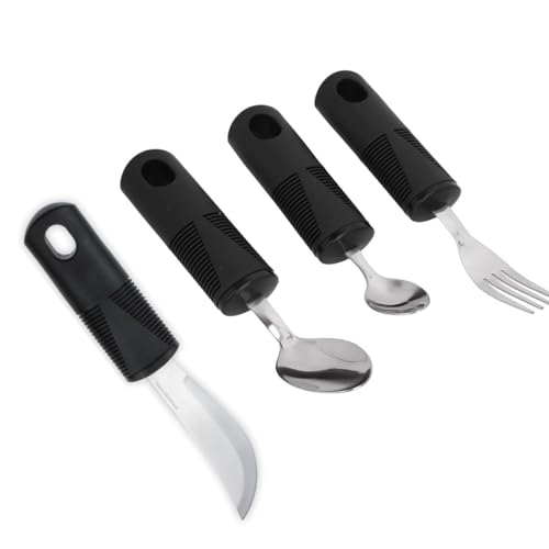 GQ - أدوات مائدة سهلة الإمساك بمقبض مطاطي مكتنز عريض للغاية، لبالغين السن وذوي الاحتياجات الخاصة والتهاب المفاصل ومرضى باركنسون من جي كيو، أسود، عبوة من 4 قطع