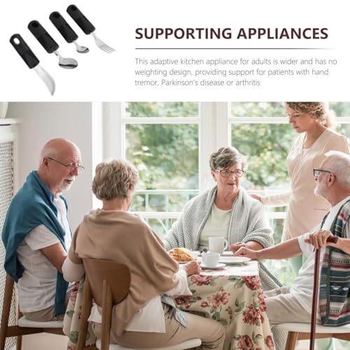 - 4. حل كامل لتناول الطعام من 4 قطع: – تتضمن أدوات تناول الطعام الأساسية: سكينة وشوكة وملعقتين واحدة كبيرة والأخرى صغيرة لتلبية جميع احتياجات الطعام. يضمن التصميم المدمج والمتماسك استخدامًا سلسًا للأشخاص الذين يحتاجون إلى المساعدة في تناول الطعام بمفردهم أو أولئك الذين يهتمون بالآخرين.