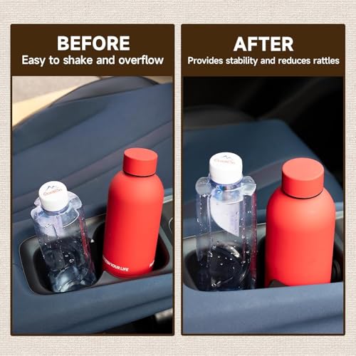 - سهل التركيب: كل ما عليك فعله هو إزالة ورقة البطانة الموجودة في الجزء السفلي من محدد موضع حامل الأكواب، وبعد ذلك قم بلصقها على الجدار الجانبي الداخلي لحامل الأكواب المركزي. لن يتسبب المنتج بحدوث تلف في السيارة أو الكوب بعد التركيب.