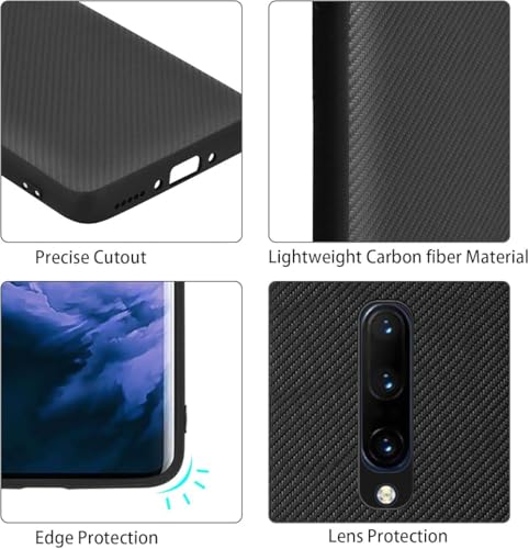 GQ - جراب من ألياف الكربون جي كيو متوافق مع ون بلس 7 برو شبكة الجيل الخامس 5G رفيع حريري مضاد لبصمات الأصابع (لون أسود)