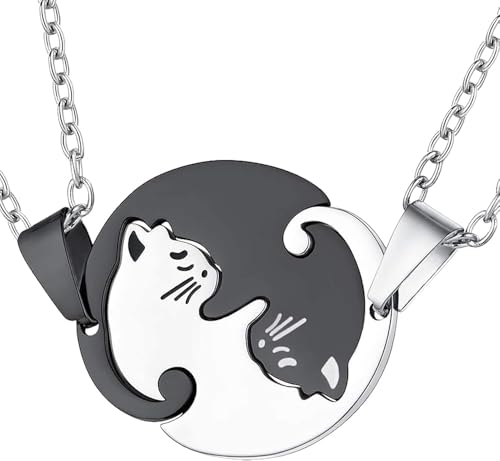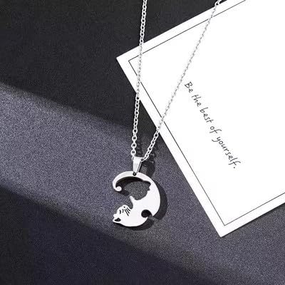 GQ - عقد بقلادة على شكل احجية للصداقة من الستانلس ستيل 316L زوجين كات بي اف بيست فريند للبنات
