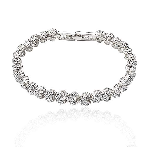 GQ - جي كيو سوار تنس فضي على شكل قلب كريستالي للعرائس والزفاف، سوار لامع للنساء