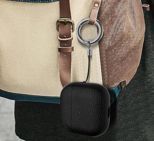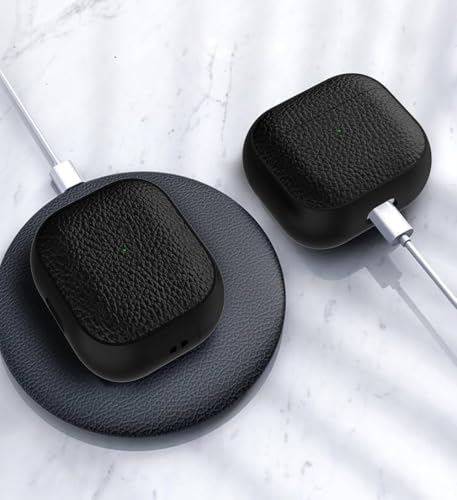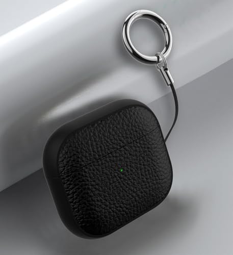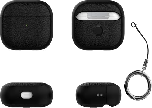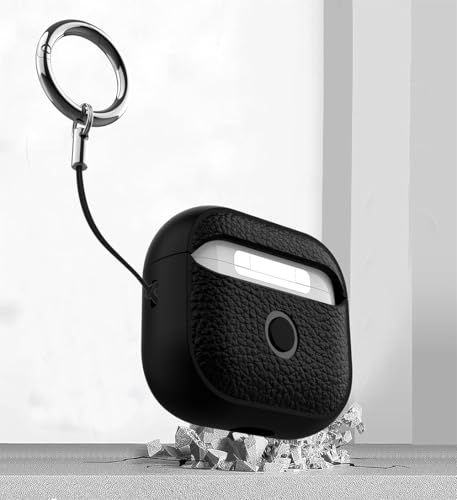 GQ - حافظة ايربودز الجيل الرابع متوافقة مع 2024 غطاء حماية من السقوط سلسلة مفاتيح جلد ليتشي الصناعي واقية البولي يوريثين الحراري مقاومة للصدمات اسود